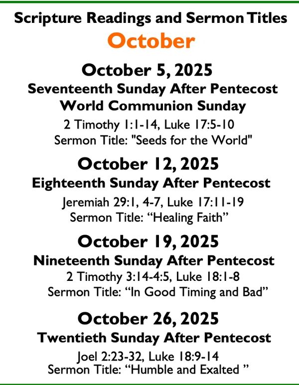 We have two special Sundays coming up: World Communion Sunday on October 5th and